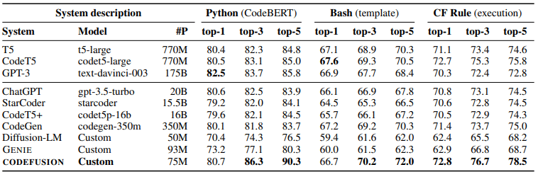 코드퓨전은 대부분의 LLM 코드 생성기처럼 auto-regressive 모델이 아닌 코드 생성 diffusion model인게 흥미롭다