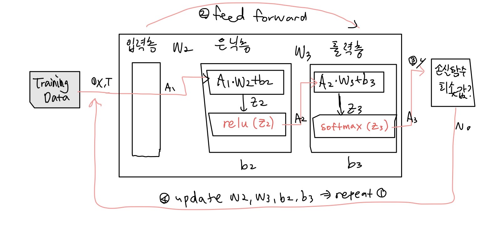 이전 게시글에서 공부했던 일반 신경망 아키텍처는 입력층,은닉층,출력층으로 이루어져 1. 입력데이터에 대해 2. 피드포워드를 수행하여 출력값 계산하고, 3. 정답T와 출력값을 비교하며 cross-entropy 손실함수 값을 구해서 4.최소가 될 때까지 오차역전파를 이용해 값을 최적화해갑니다.