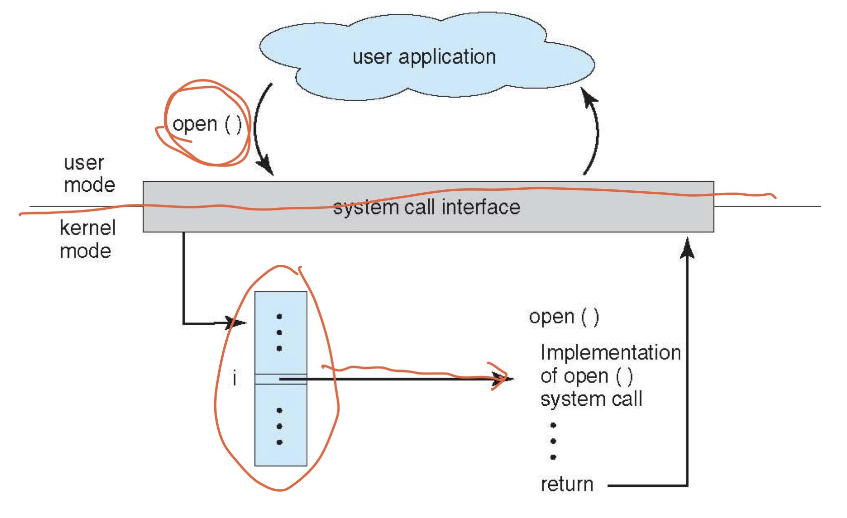 예를 들어, user 수준의 프로그램이 I/O를 요구하면 (printf와 같은) 시스템 콜이 발생하여 Kernel모드로 변환되어 privilledged instruction에 의해 I/O를 수행 후 다시 user 프로그램으로 복귀합니다.