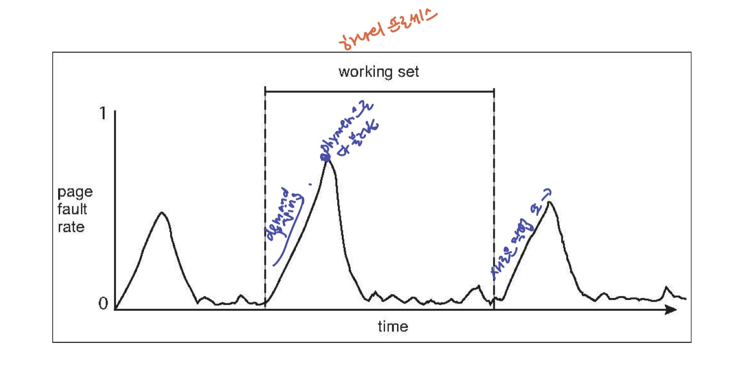 Demand Paging 기법은 Locality 기반의 모델이기에 반복적으로 참조가 될 수 있습니다. 자기에게 할당된 physical 프레임 set에서 골라야하기 때문입니다.