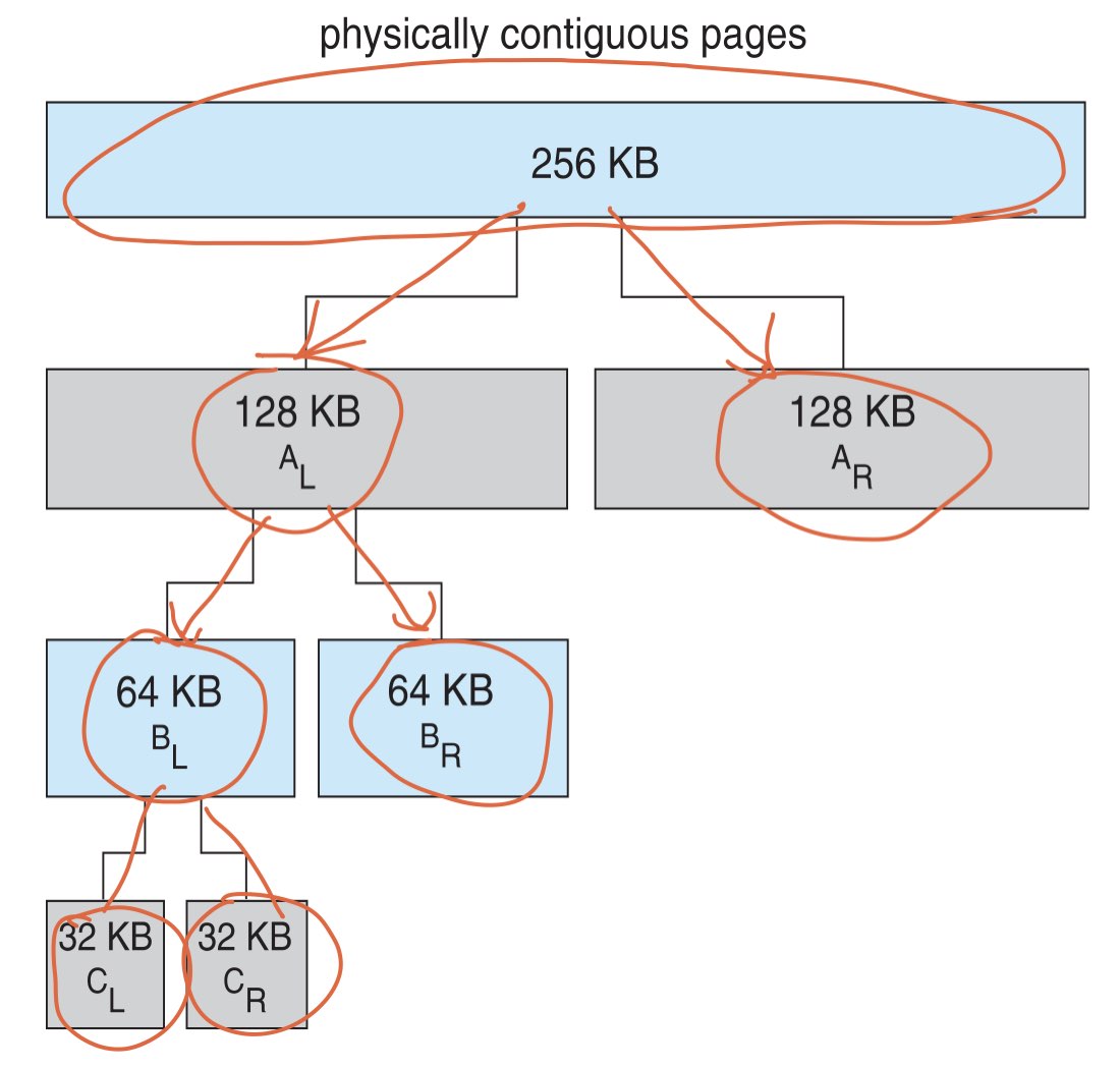 장점: 나중에 할당 후 phy mem 반납시 용이하다. 256kB를 원상 복구할때 연속적 모으기를 통해 용이하다.