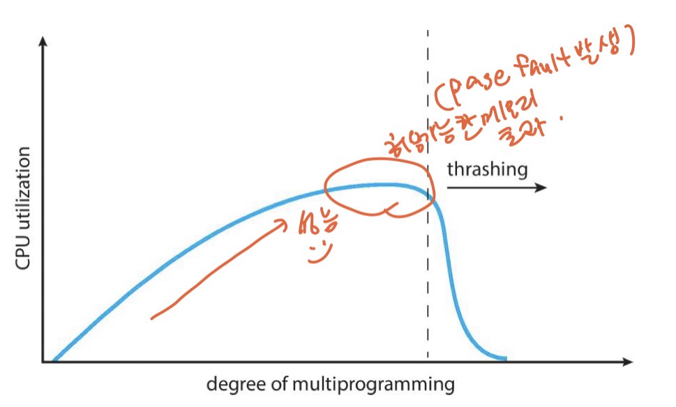 만약 D > m (total memory size) --> thrashing 발생 (D<m이라면 더 생성해도된다)